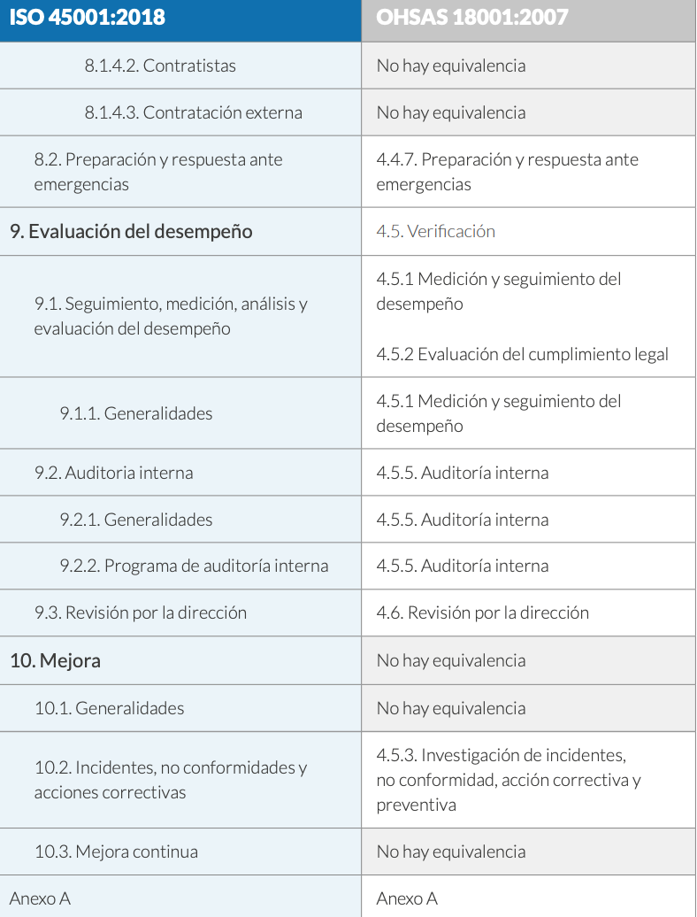 Principales cambios entre ISO 45001 y OHSAS 18001
